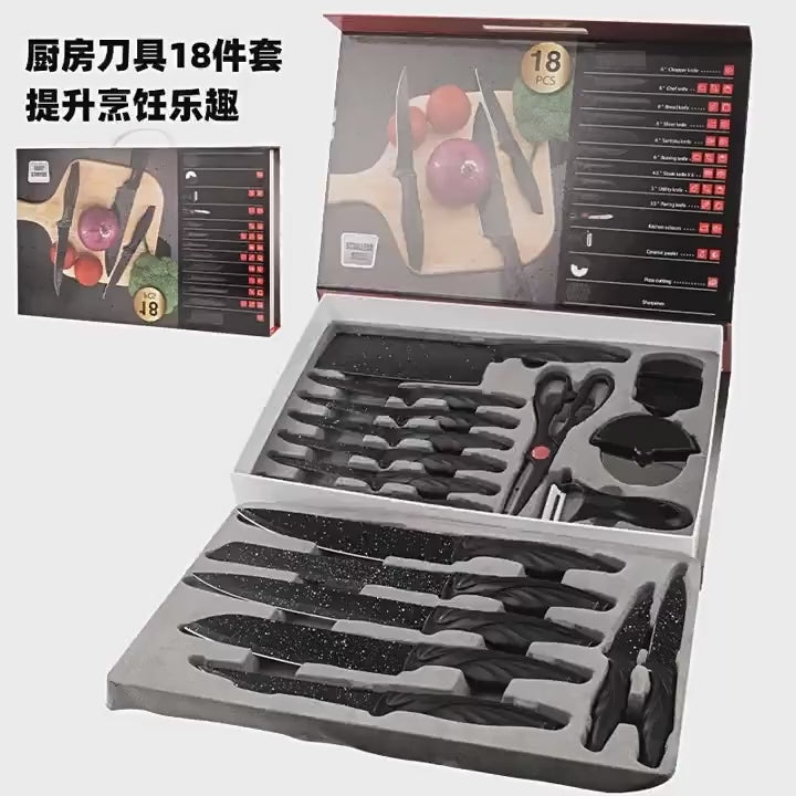 ارتقِ بتجربة مطبخك مع طقم سكاكين الجرانيت المكون من 18 قطعة، المصمم لتلبية جميع احتياجاتك من التقطيع بدقة وسهولة. تتضمن هذه المجموعة الشاملة أنواعًا مختلفة من السكاكين المصنوعة من مواد متينة وعالية الجودة تضمن حدتها وموثوقيتها طويل الأمد. سواء كنت تقطع أو تقطع مكعبات أو تقطع شرائح، توفر كل شفرة توازنًا وتحكمًا ممتازين، مما يجعل تحضير الطعام أسرع وأكثر أمانًا. يوفر المقبض الأنيق المستوحى من الجرانيت قبضة مريحة ومضادة للانزلاق لسهولة الاستخدام. حسّن أدواتك الطهوية مع هذه المجموعة متعددة الاستخدامات التي تجمع بين الأناقة والعملية والمتانة لتحسين تجربة الطهي كل يوم.