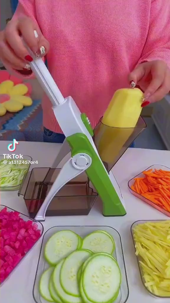 اكتشف إمكانيات لا حصر لها مع قطاعة الخضار متعددة الوظائف! استمتع بـ 30 قطعة مختلفة بسهولة ودون قلق بشأن ارتخاء الشفرات. مصنوعة من مواد متينة، آمنة وسهلة التنظيف. ارتقِ بمهاراتك في الطبخ الآن!