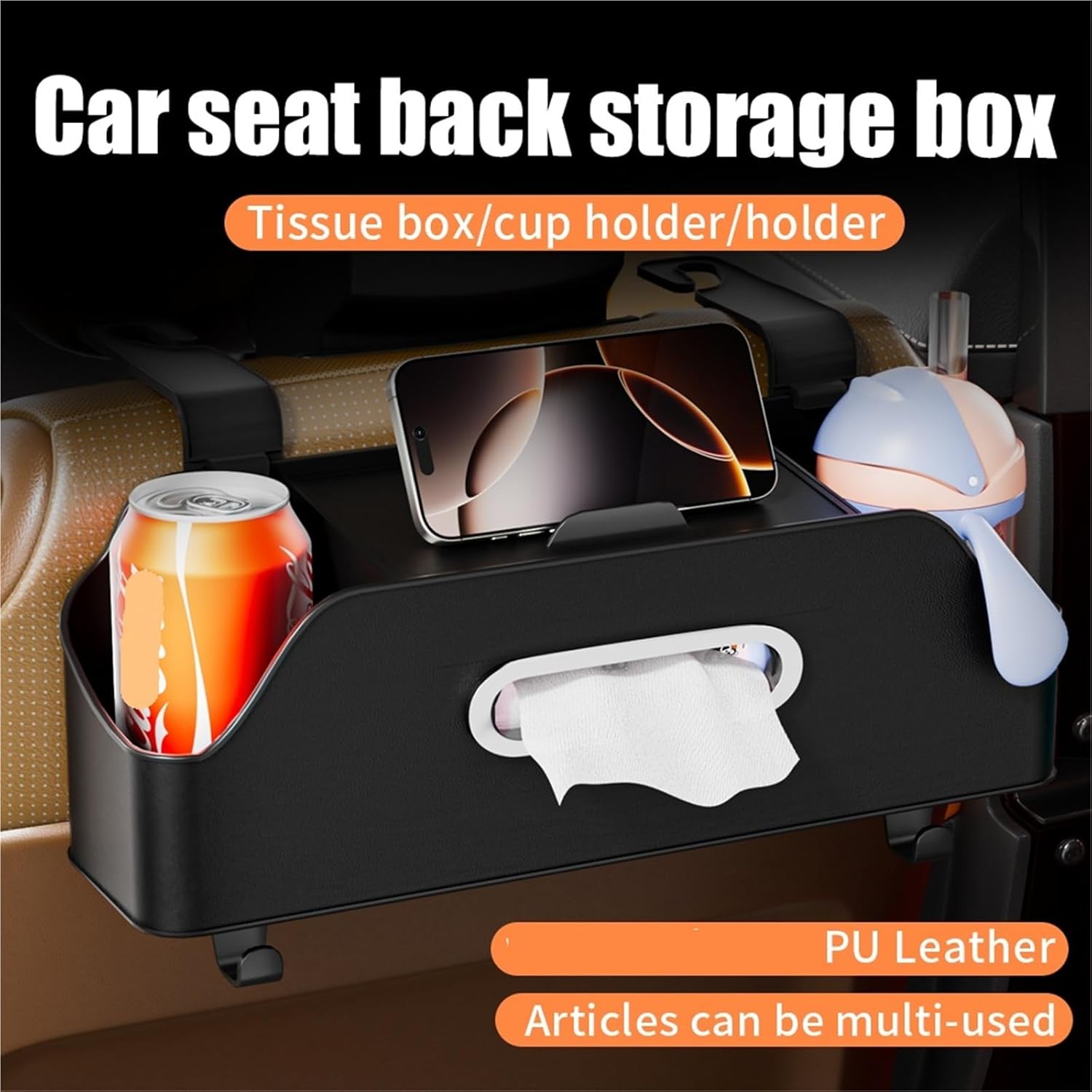 صندوق تخزين متعدد الوظائف لظهر مقعد السيارة، منظم مقعد سيارة عالمي مع حاملين لأكواب الشراب وخطافين، منظم مناديل لظهر مقعد السيارة للعائلة والسفر (أسود)